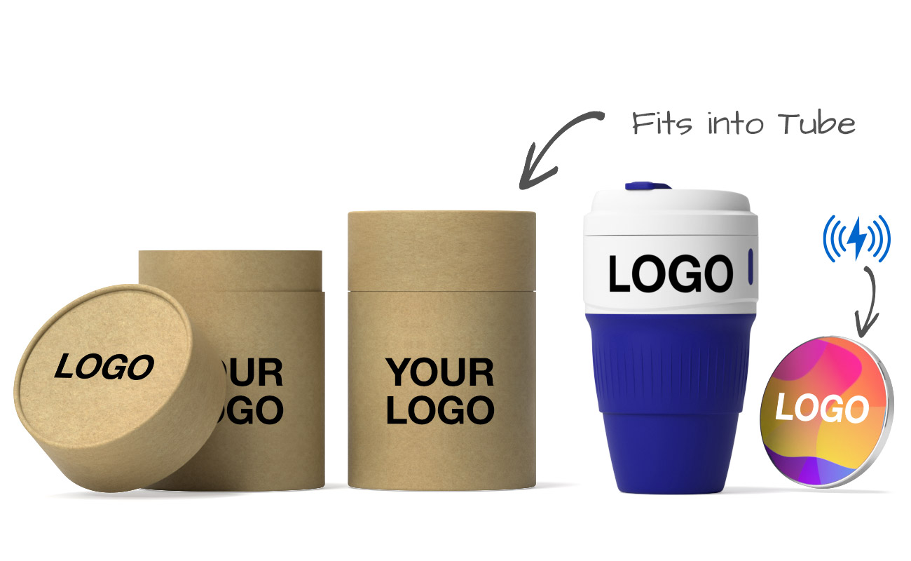 The Muse Merch Pack combines a Travel Cup and Wireless Charger in one handy tube, all ready to be branded with your logo and distributed to employees, clients or trade show attendees. Get in touch today regarding prices, branding, delivery times and combination options.