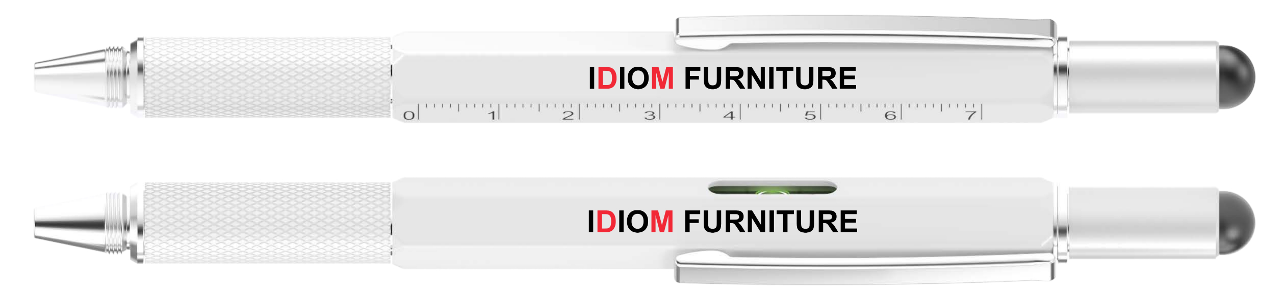 - Ballpoint Pen, Spirit Level, Ruler, Screwdriver & Stylus