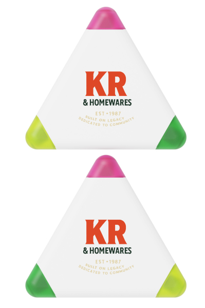 Our Triple highlighter pen boasts 3 different highlighters on one model - yellow, green and pink. The eye-catching triangular shape also makes it an extremely popular giveaway item. We can add your logo, slogan and more to both sides of the Triple - which gives you fantastic brand exposure on a product that'll be kept and used frequently.
