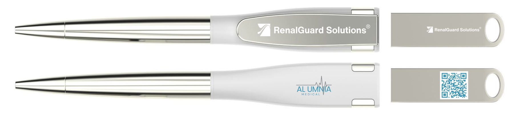 The 4 branding areas are visible on the body of the ballpoint pen and the detachable USB drive to keep your logo visible at all times.